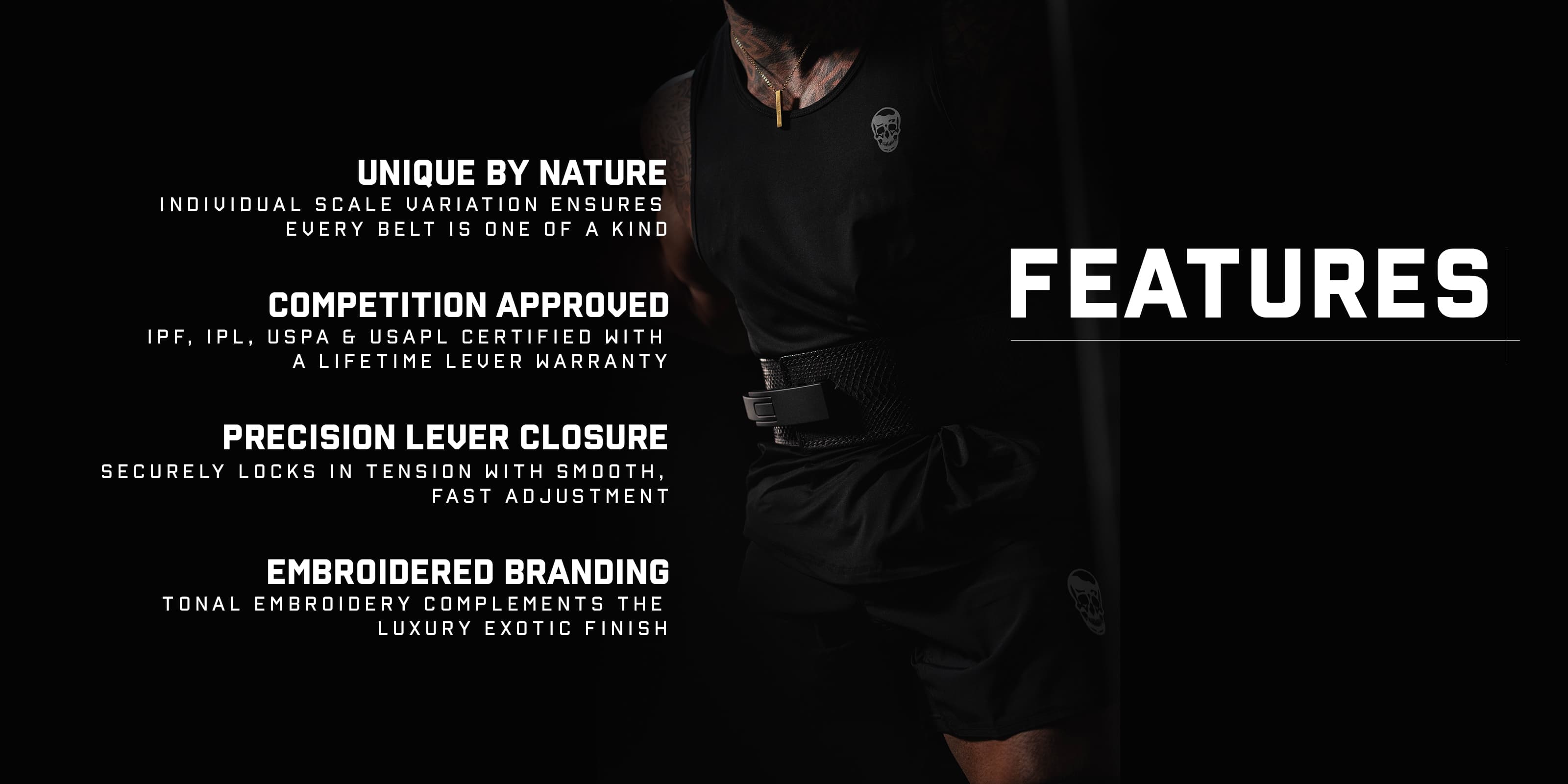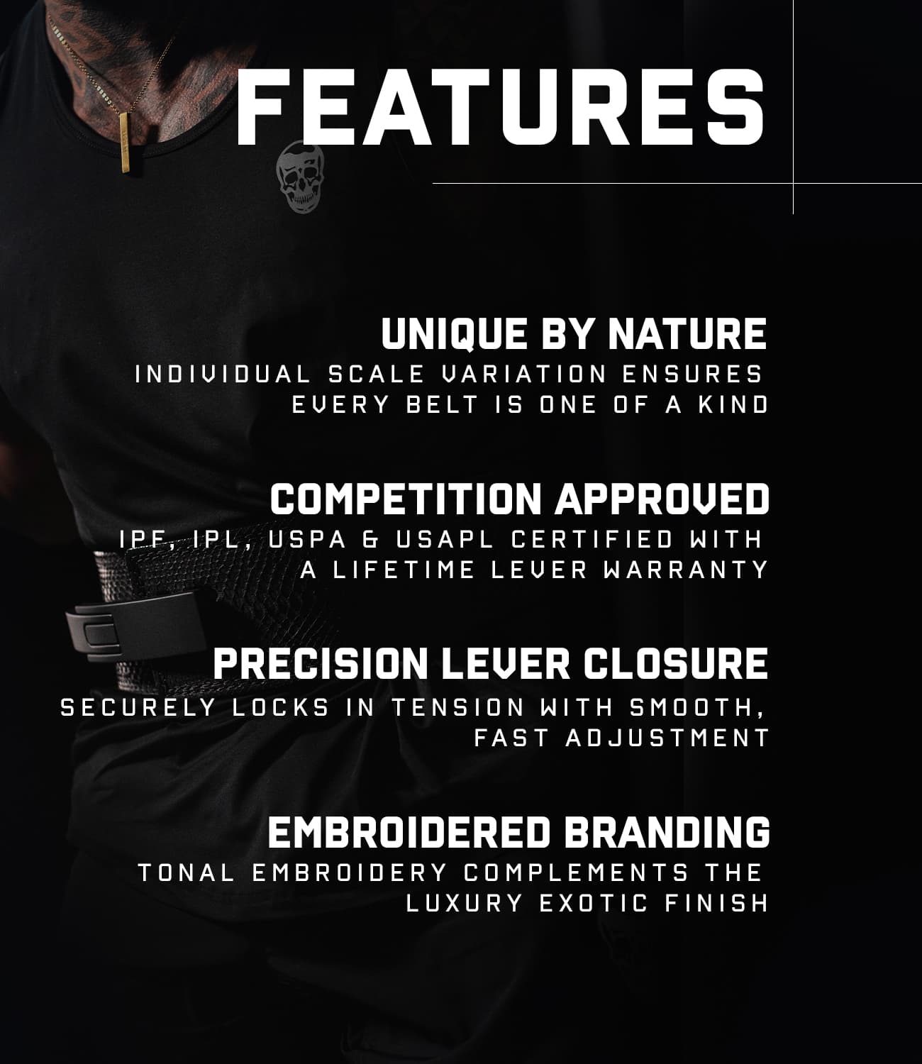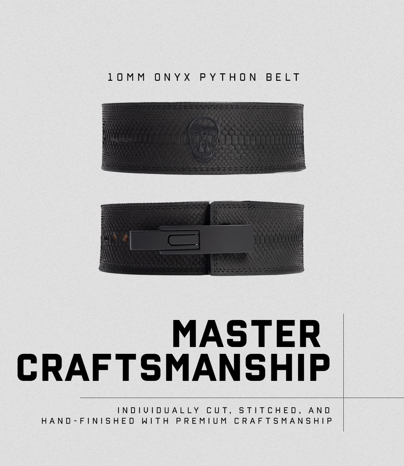 Introducing the Onyx Python Lever Belt; part of Gymreapers’ first-ever exotic belt collection. With blacked out hardware and a uniform black finish, this belt is the embodiment of stealth, luxury, and performance.