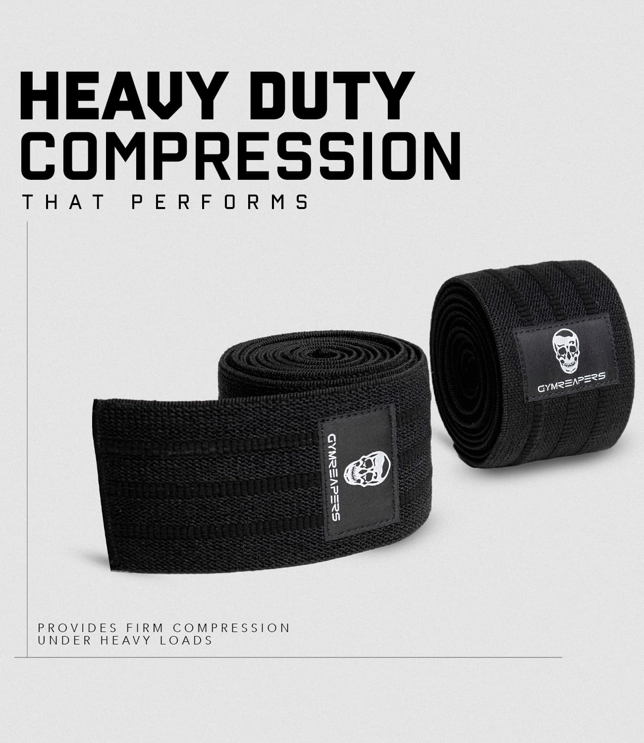 Gymreapers heavy duty knee wraps provide the compression, rebound, and joint support you need for squats, leg presses, and powerlifting. Featuring a tuck-end closure system for a secure, adjustable fit without the need for hook and loop fasteners.